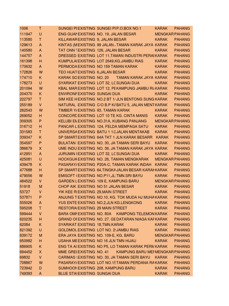 28 Lorong Seri Kuantan 57 Taman Ruby 25250 Kuantan Pahang Malaysia. 09-539 6815 09-539 6054 Fax. Ipoh 05-321 0068 05-321 4099.